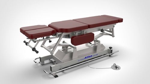 Déplacement vertical parallèle au sol quel que soit le poids du patient et sa position. Actionné par une pédale périphérique et une commande manuelle Grande vitesse de déplacement vertical, course complète en 15 secondes Couleur du bâti : Gris - blanc sur demande Poids admis : 250 kg Têtiére: réglage de l’inclinaison réalisée par ressort à gaz.. Sur demande: motorisée, commandée par pédale Equipée d’un drop dorsal Possibilité d’adjoindre un drop lombaire et un drop cervical Résistance au déclanchement réglée mécaniquement + ajustage électronique